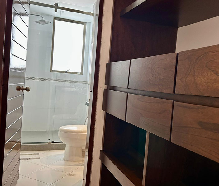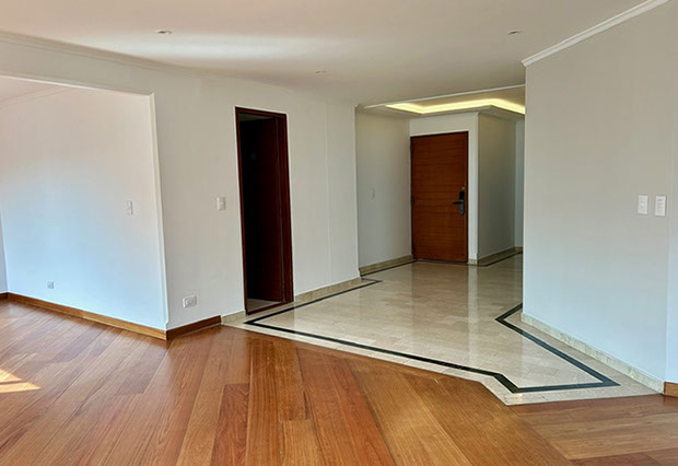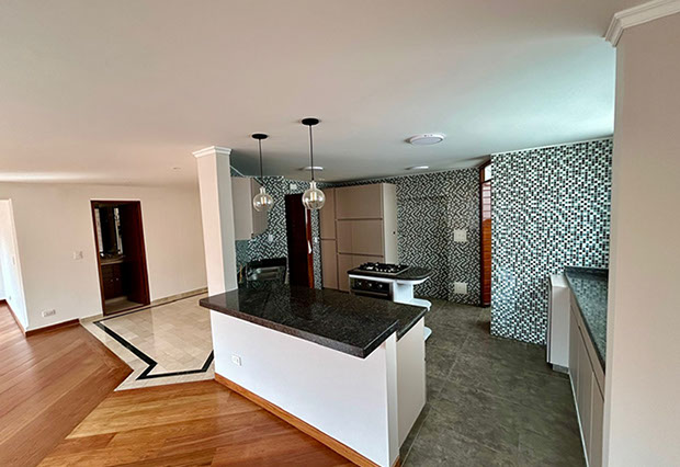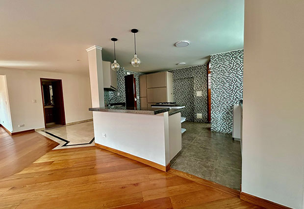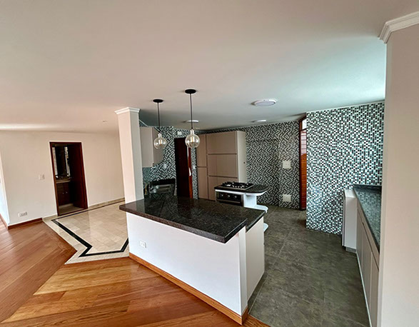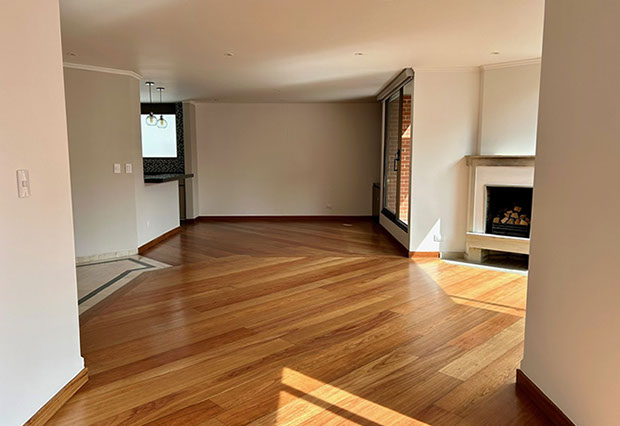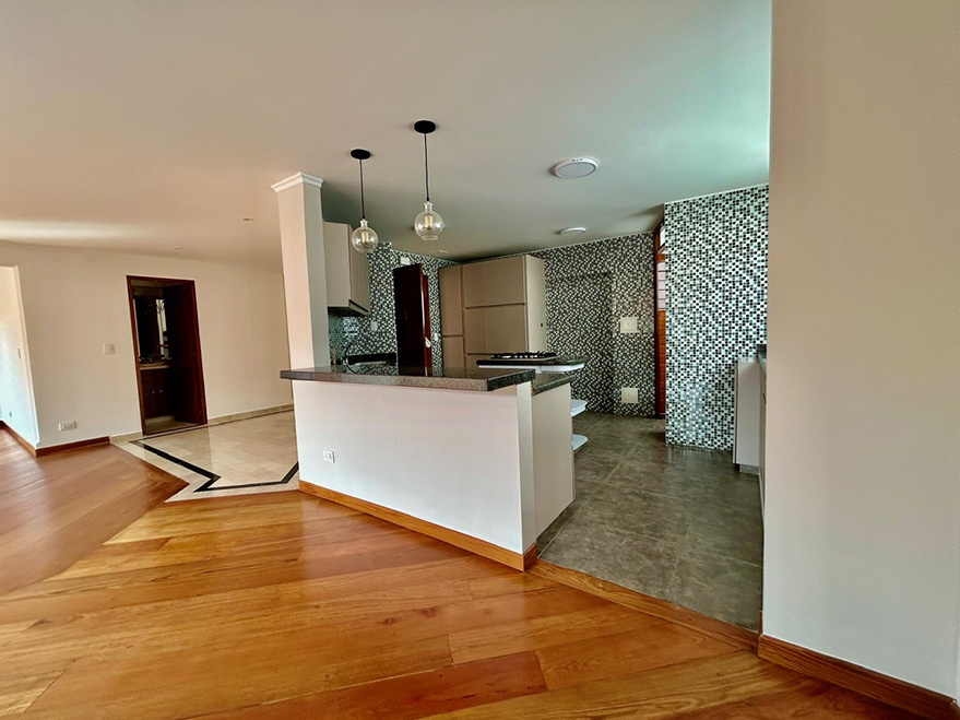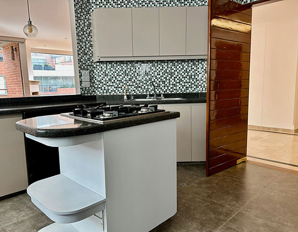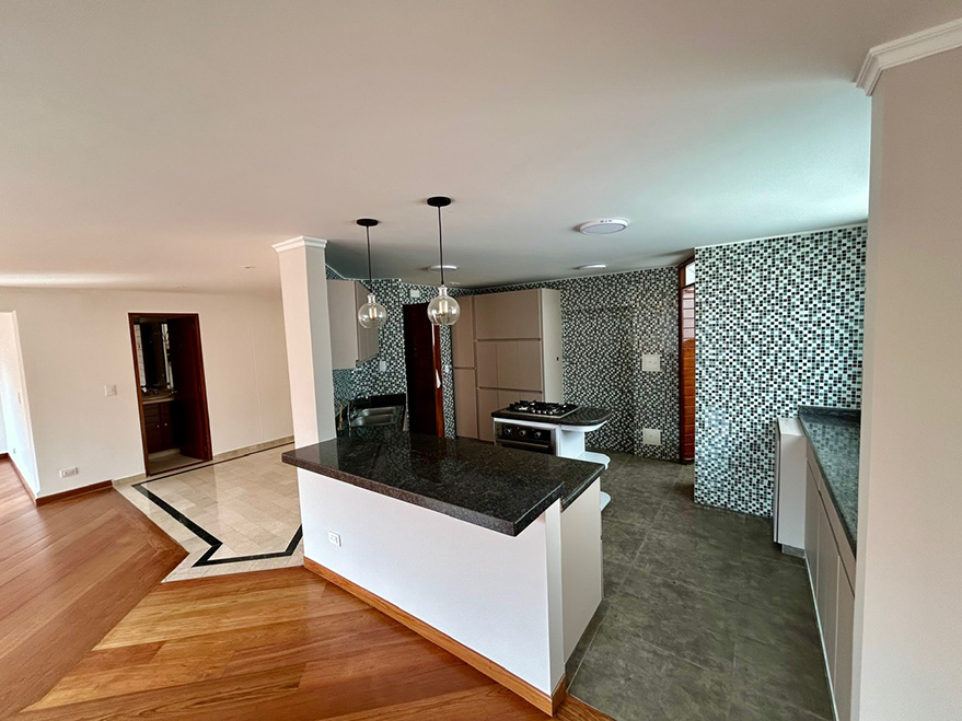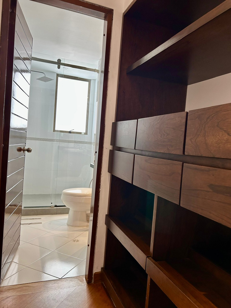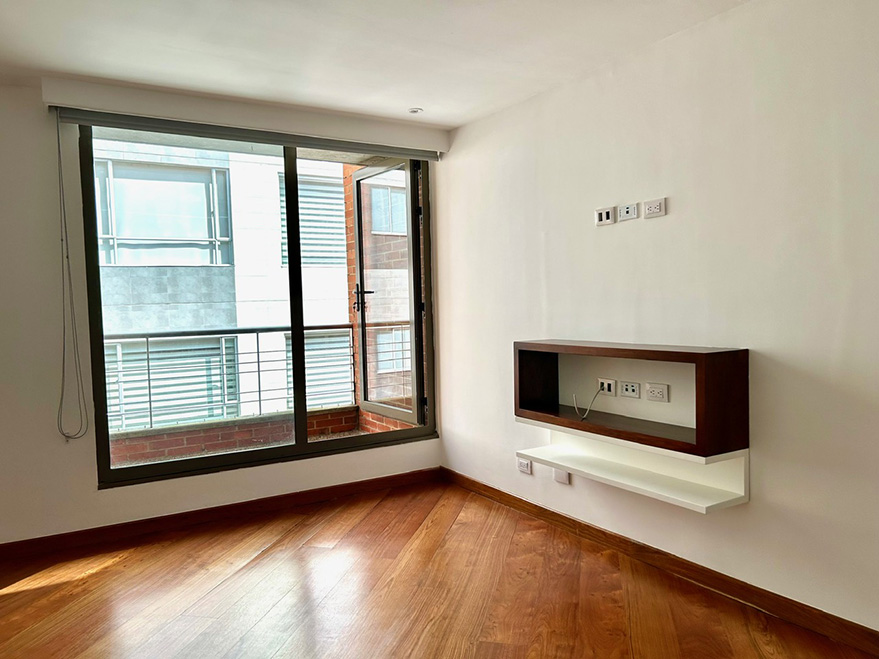 En sector de alta valorización, vías de transporte masivo cercano, comercio básico. El apartamento se encuentra en edificio tradicional, con ascensor y parqueaderos de visitantes completamente remodelado con terminados triple A, pisos en madera maciza y mármol. Cálido, iluminado con sol de la tarde, espacio social integrado de sala con chimenea y comedor, salida a balcón, baño social, cocina abierta con barra, electrodomésticos que hacen funcional este espacio, zona de lavandería cerrada y ventilada con habitación y baño de servicio. El espacio de habitaciones independiente y privado, lo conforman 3 habitaciones, la principal con baño privado y vestier. Las habitaciones auxiliares comparten baño, se encuentra con ventanería termoacústica, cableado UTP, 2 parqueaderos en línea, y depósito. vigilancia 24/7.