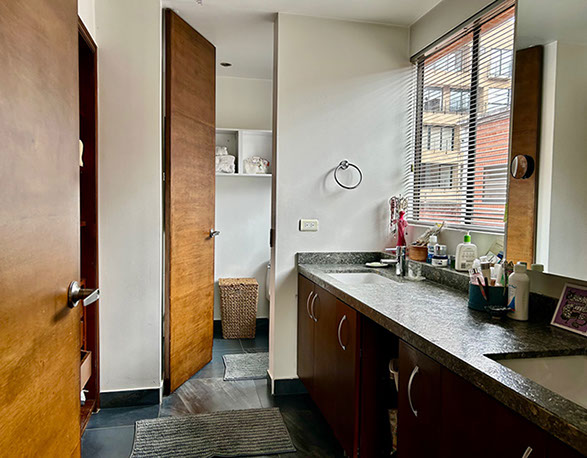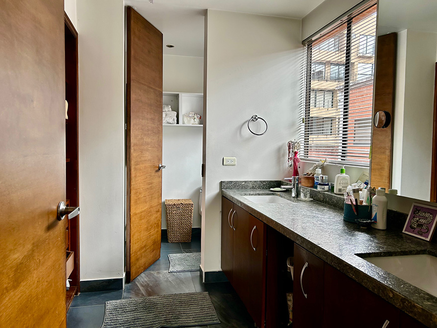 Vendo apartamento impecable, cálido, cómodo, luz y sol. Ubicado frente a parque, cuenta con 3 habitaciones, la principal con un amplio vestier y baño privado. Las otras dos comparten baño sala y comedor en un solo ambiente con cocina abierta remodelada, torre hornos, lavador eléctrico de platos y excelentes terminados. Zona de servicios con zona de lavandería, habitación y baño de servicio. Estudio, 3 parqueaderos y deposito. Área 205 m2, edad 1994. 8 aptos en total personalizados con los mejores acabados.