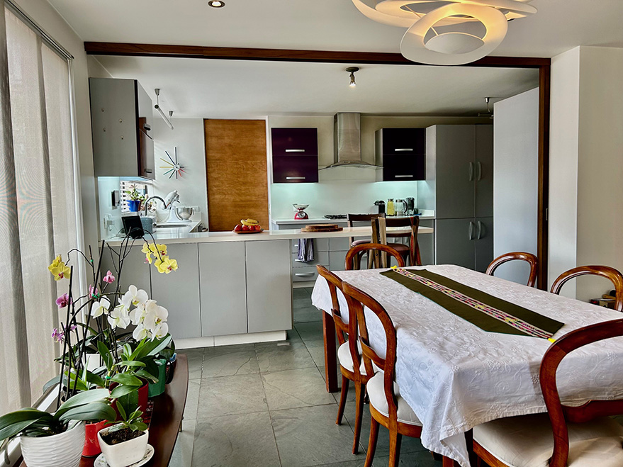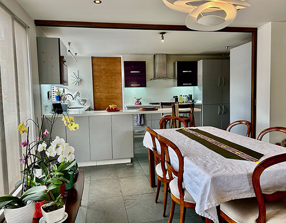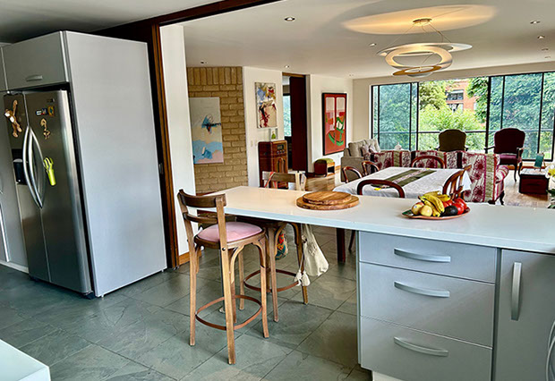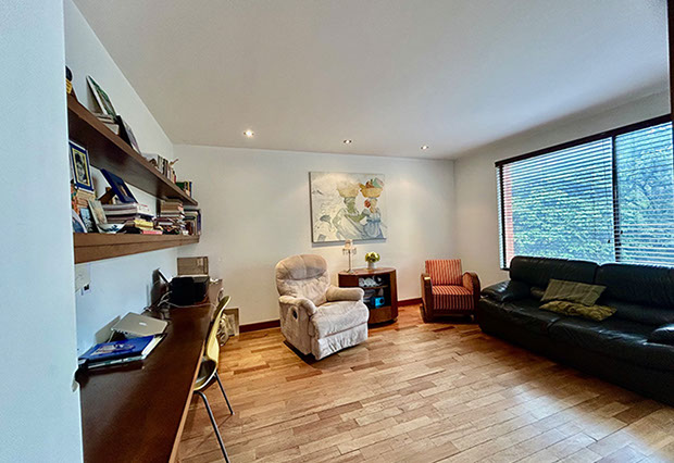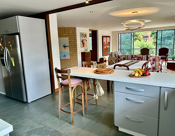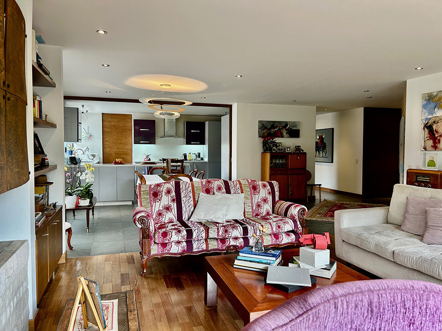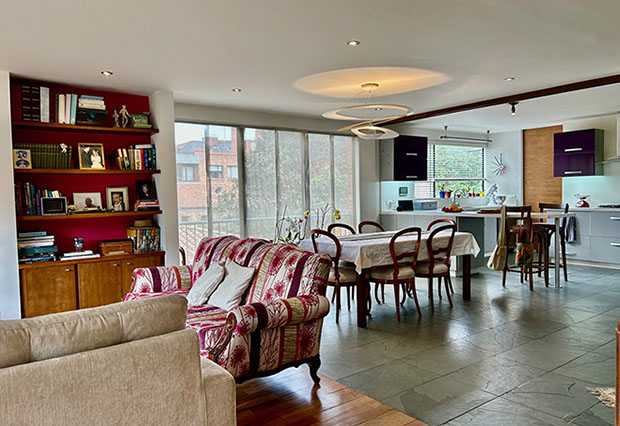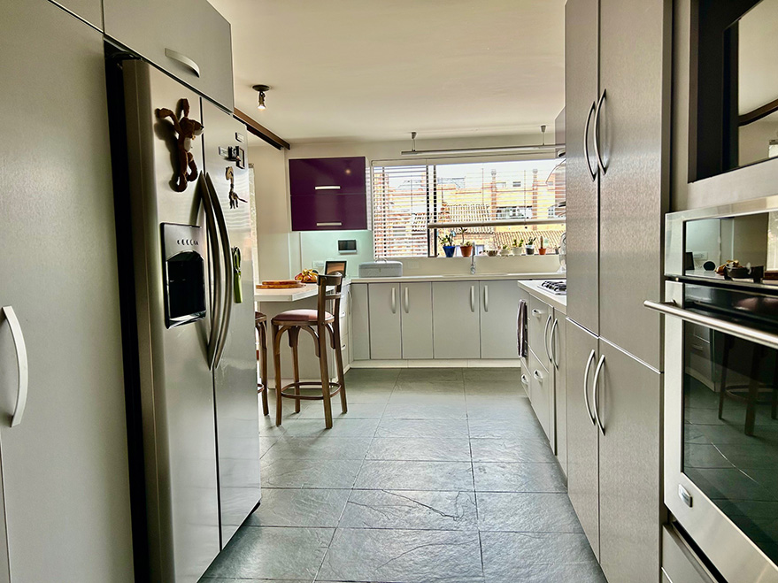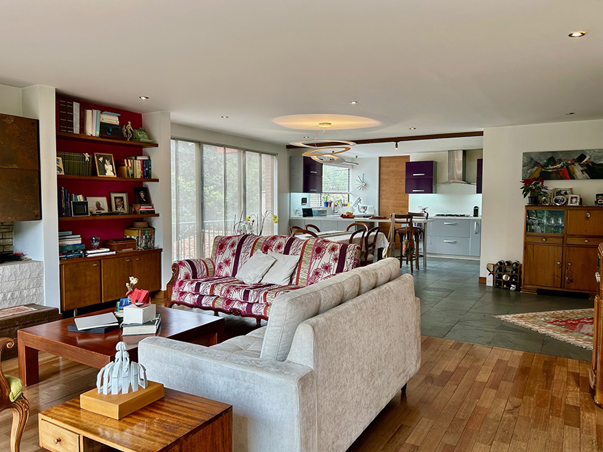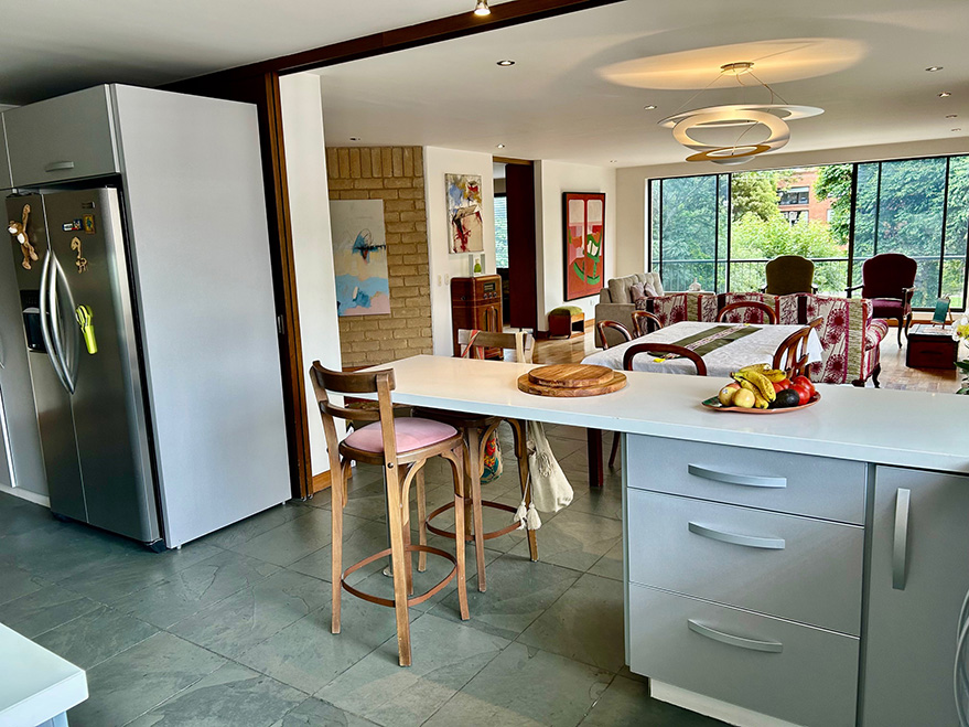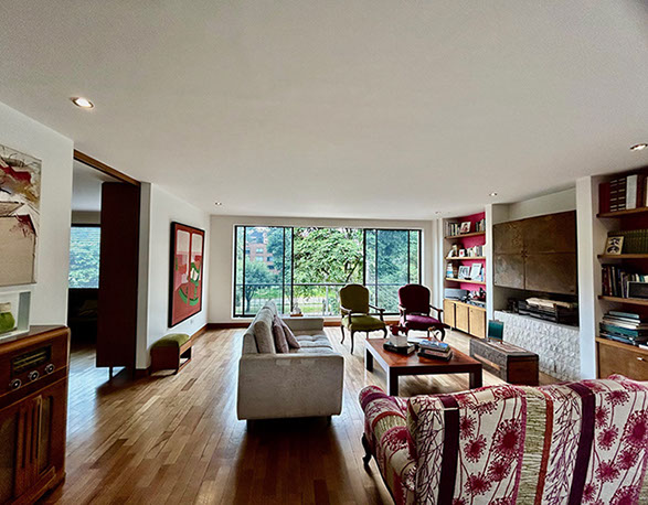 Vendo apartamento impecable, cálido, cómodo, luz y sol. Ubicado frente a parque, cuenta con 3 habitaciones, la principal con un amplio vestier y baño privado. Las otras dos comparten baño sala y comedor en un solo ambiente con cocina abierta remodelada, torre hornos, lavador eléctrico de platos y excelentes terminados. Zona de servicios con zona de lavandería, habitación y baño de servicio. Estudio, 3 parqueaderos y deposito. Área 205 m2, edad 1994.