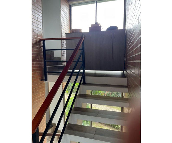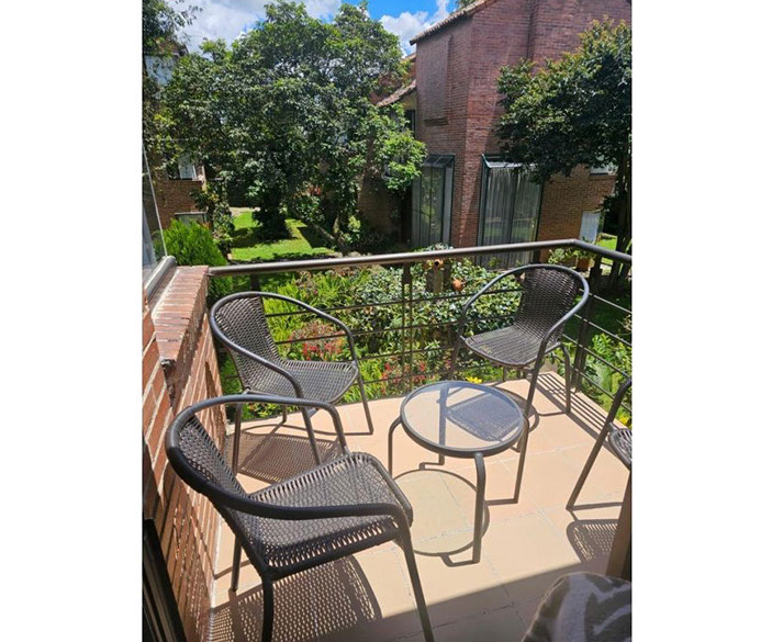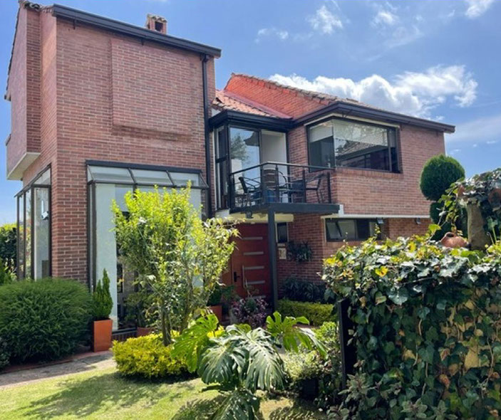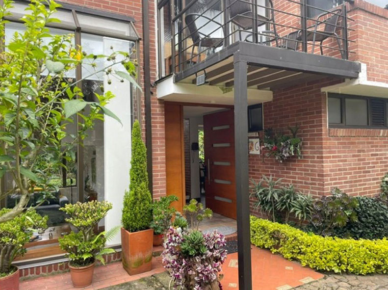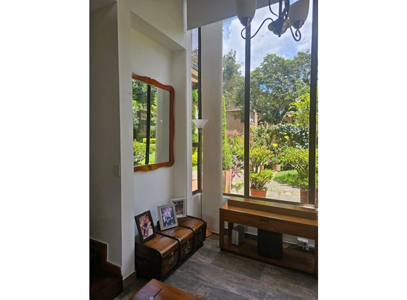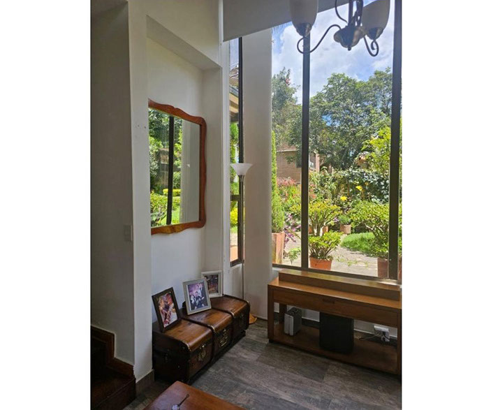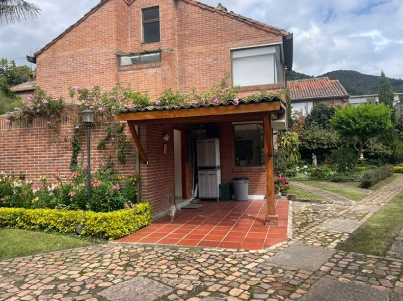 Vendo casa Chía vía Cota muy cerca de Andrés Carne de Res en conjunto cerrado, rodeado de árboles y naturaleza, con tanque de reserva de agua por hidroflow, y de aguas lluvias. Tiene un sendero para caminar y huerta comunal. La casa está completamente remodelada, iluminada, cálida con ventanería piso techo en sala, con área construida de 184 m2 (151 CDL) y tres niveles. El primer nivel consta de; sala con chimenea, comedor independiente, baño social, cocina abierta con barra, comedor auxiliar y zona de lavandería. En el segundo nivel; estudio con sala de TV y balcón, 2 habitaciones una de ellas con altillo, que comparten un baño. En el tercer nivel; habitación principal con baño privado y 2 parqueaderos. Administración por conserjería.