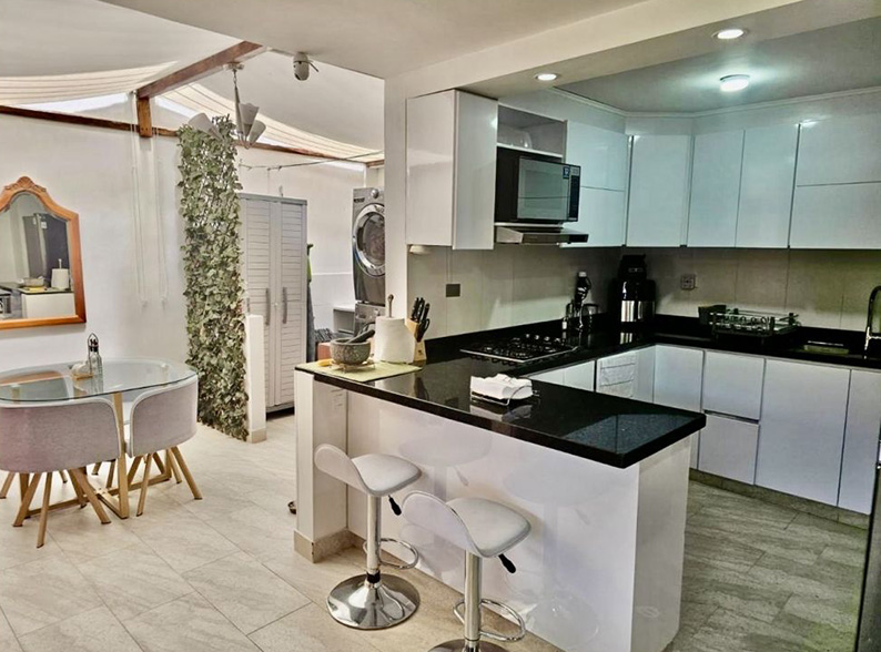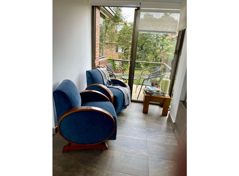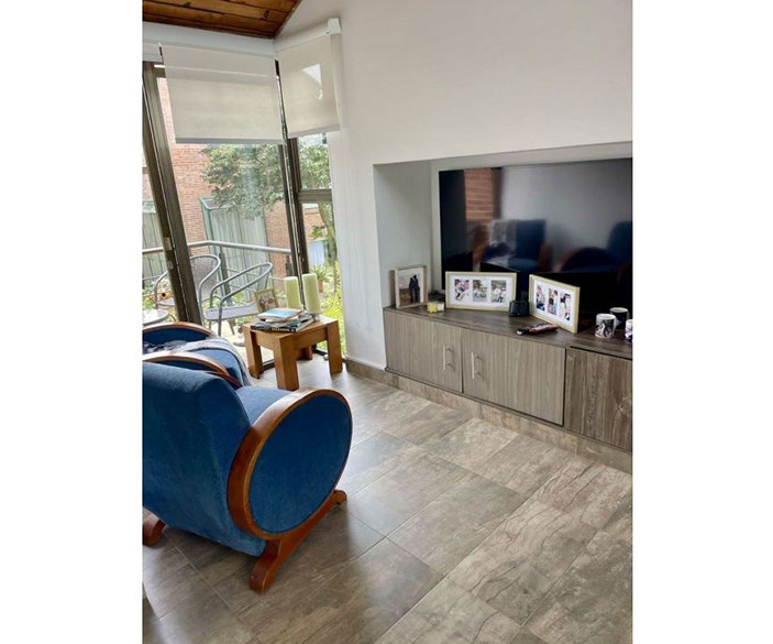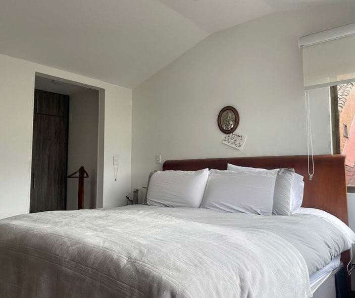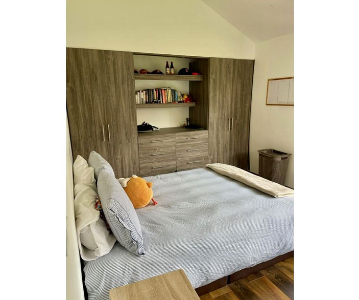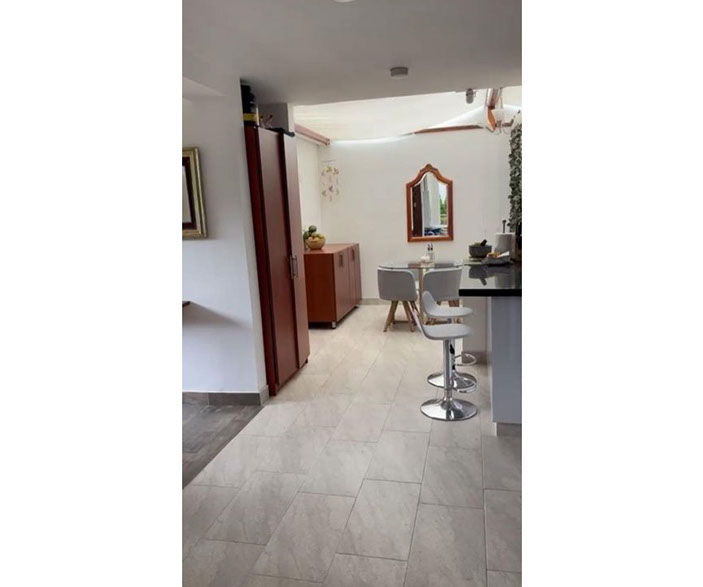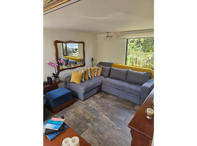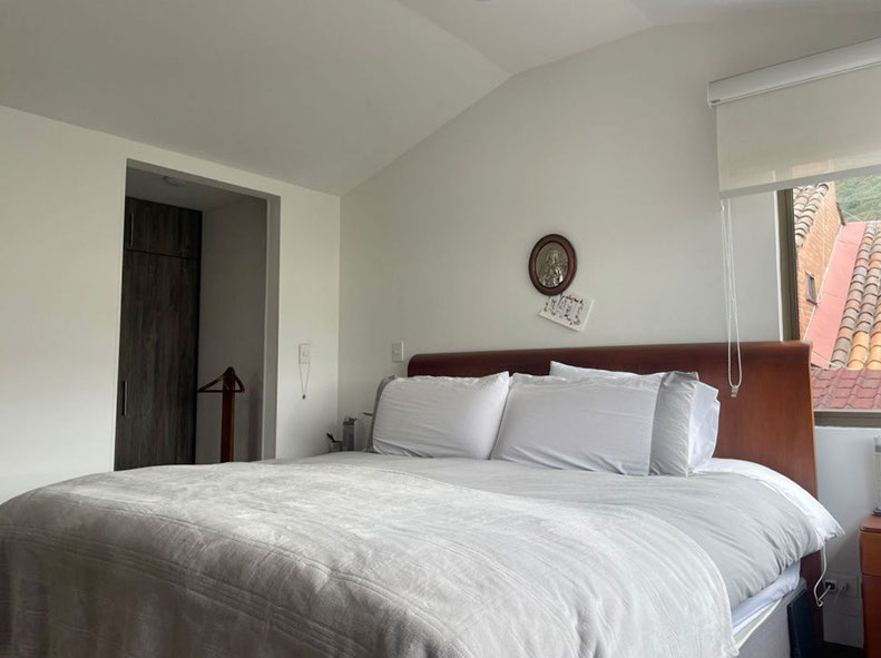 Vendo casa Chía vía Cota muy cerca de Andrés Carne de Res en conjunto cerrado, rodeado de árboles y naturaleza, con tanque de reserva de agua por hidroflow, y de aguas lluvias. Tiene un sendero para caminar y huerta comunal. La casa está completamente remodelada, iluminada, cálida con ventanería piso techo en sala, con área construida de 184 m2 (151 CDL) y tres niveles. El primer nivel consta de; sala con chimenea, comedor independiente, baño social, cocina abierta con barra, comedor auxiliar y zona de lavandería. En el segundo nivel; estudio con sala de TV y balcón, 2 habitaciones una de ellas con altillo, que comparten un baño. En el tercer nivel; habitación principal con baño privado y 2 parqueaderos. Administración por conserjería.