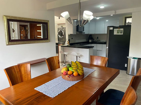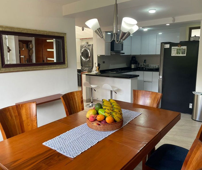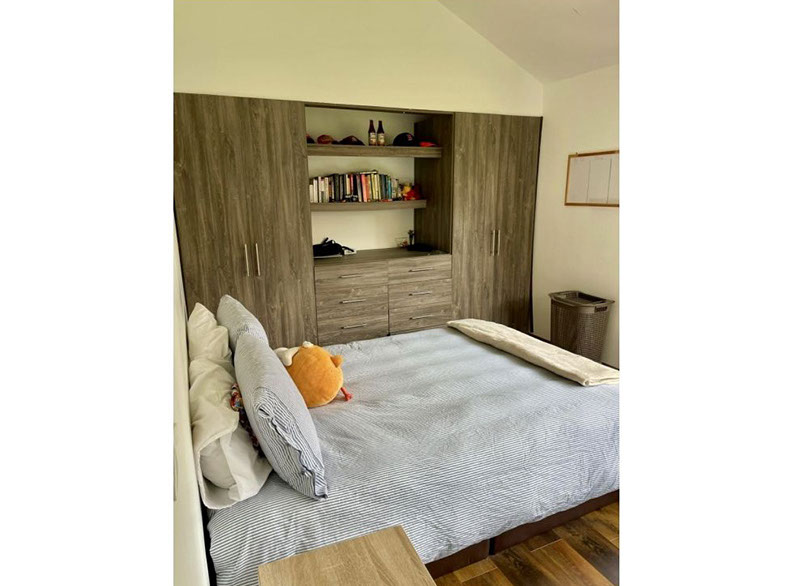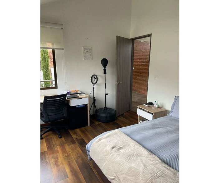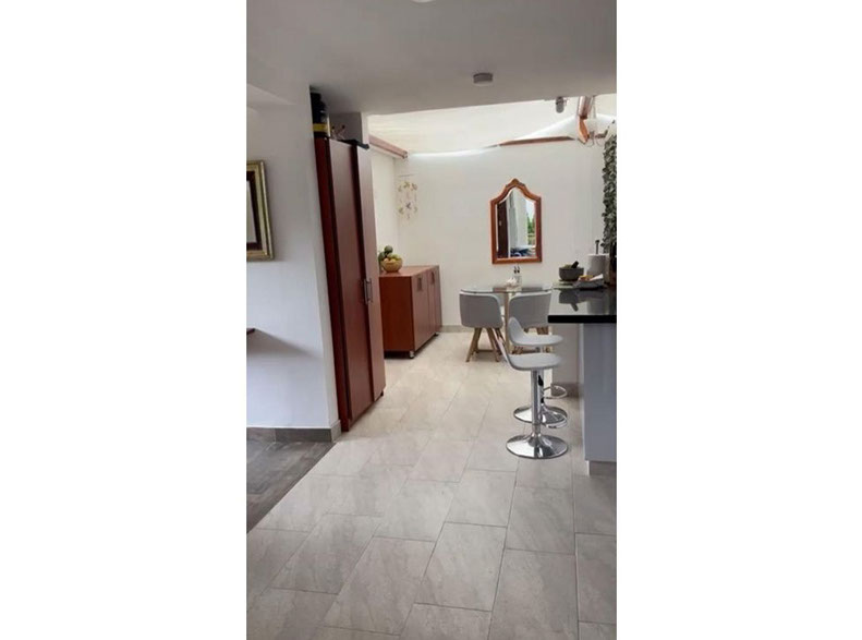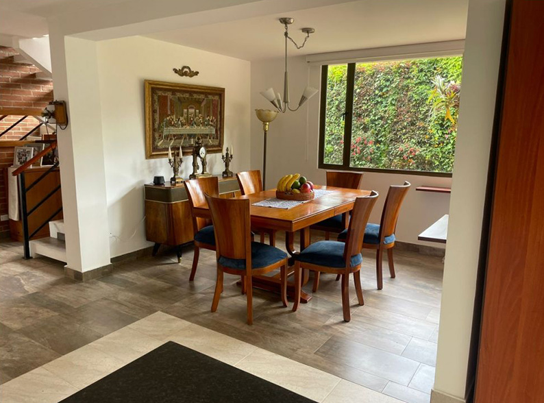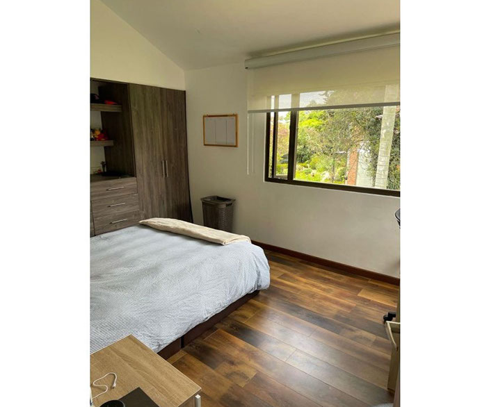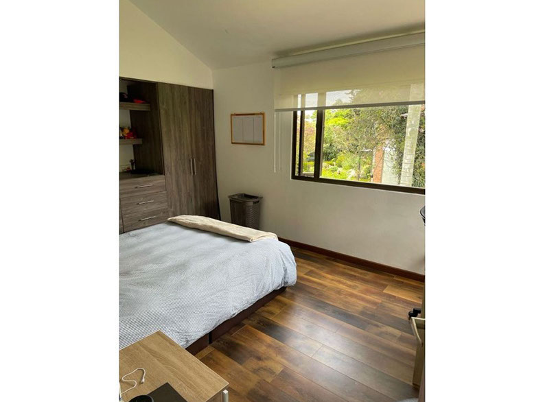 Vendo casa Chía vía Cota muy cerca de Andrés Carne de Res en conjunto cerrado, rodeado de árboles y naturaleza, con tanque de reserva de agua por hidroflow, y de aguas lluvias. Tiene un sendero para caminar y huerta comunal. La casa está completamente remodelada, iluminada, cálida con ventanería piso techo en sala, con área construida de 184 m2 (151 CDL) y tres niveles. El primer nivel consta de; sala con chimenea, comedor independiente, baño social, cocina abierta con barra, comedor auxiliar y zona de lavandería. En el segundo nivel; estudio con sala de televisión y balcón, 2 habitaciones una de ellas con altillo, que comparten un baño. En el tercer nivel; habitación principal con baño privado y 2 parqueaderos. Administración por conserjería.
