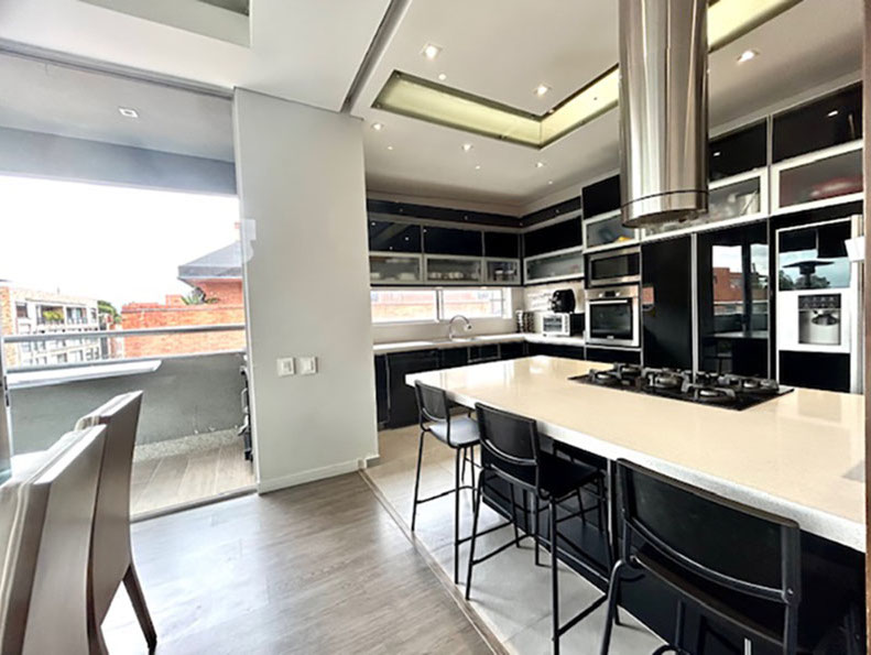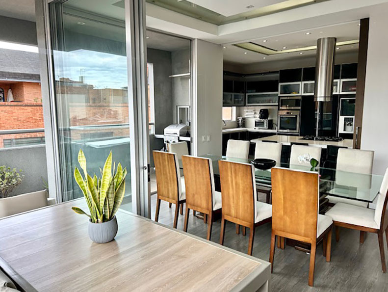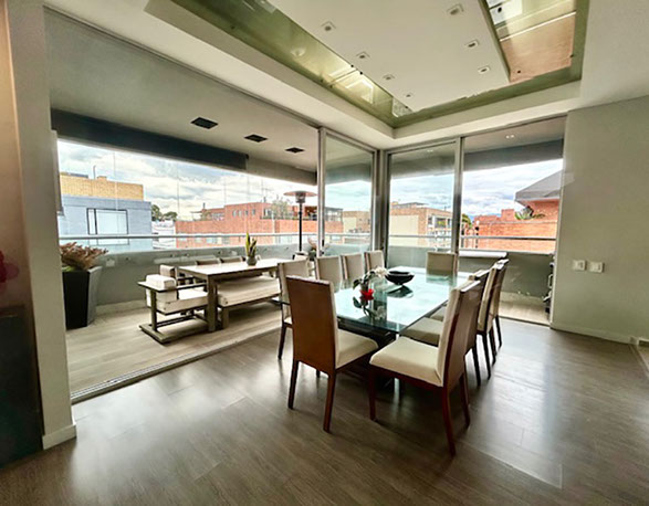 Venta Penthouse Santa Paula, en el corazón del norte de Bogotá, con las mejores vías de acceso, carrera 9, carrera 15, calles 127, 116, 109, en donde puedes encontrar todo lo que necesitas. Centros comerciales, clínicas, colegios, restaurantes, y corredores viales que harán de tu vida un lugar de crecimiento, comodidad y confort. El apartamento enmarcado en 245 m2 con terminados modernos y actuales que le dan rentabilidad a tu inversión. Los amplios espacios sociales, con terraza semiperimetral, cocina abierta, barra, zona de servicios, sala de televisión, estudio, salón de juegos, 3 habitaciones, cada una con baño privado y la principal con vestier y balcón.