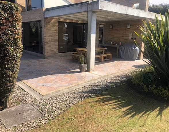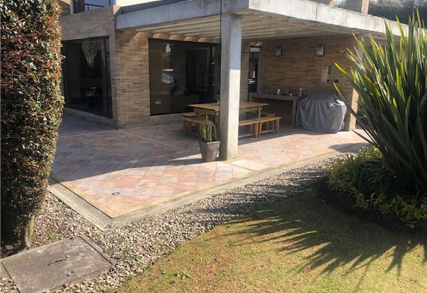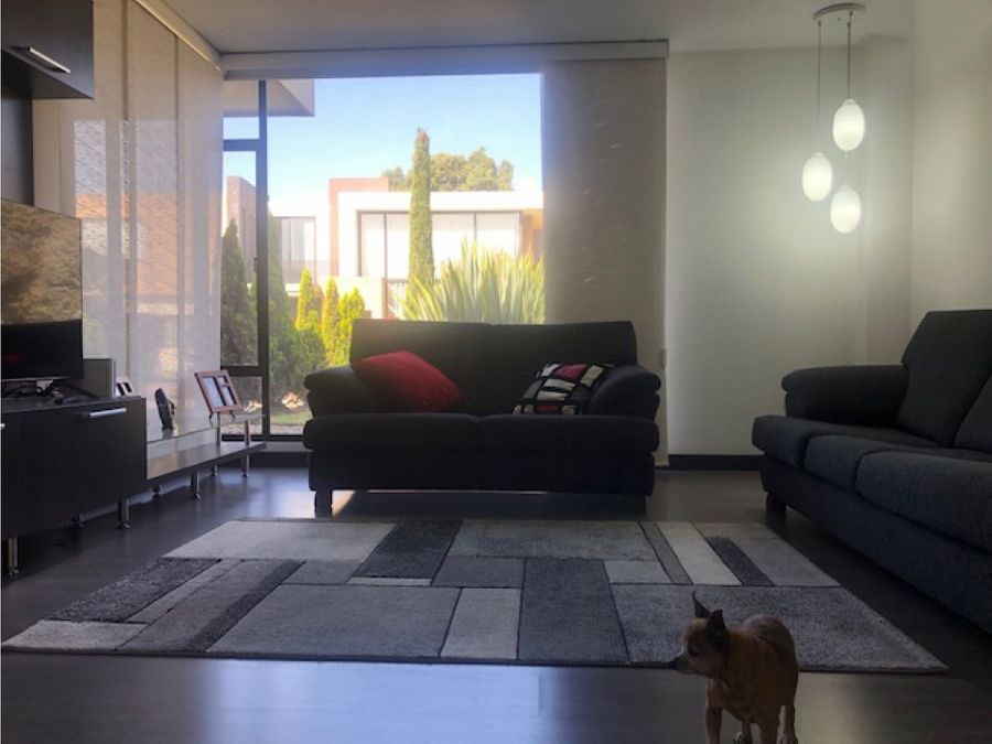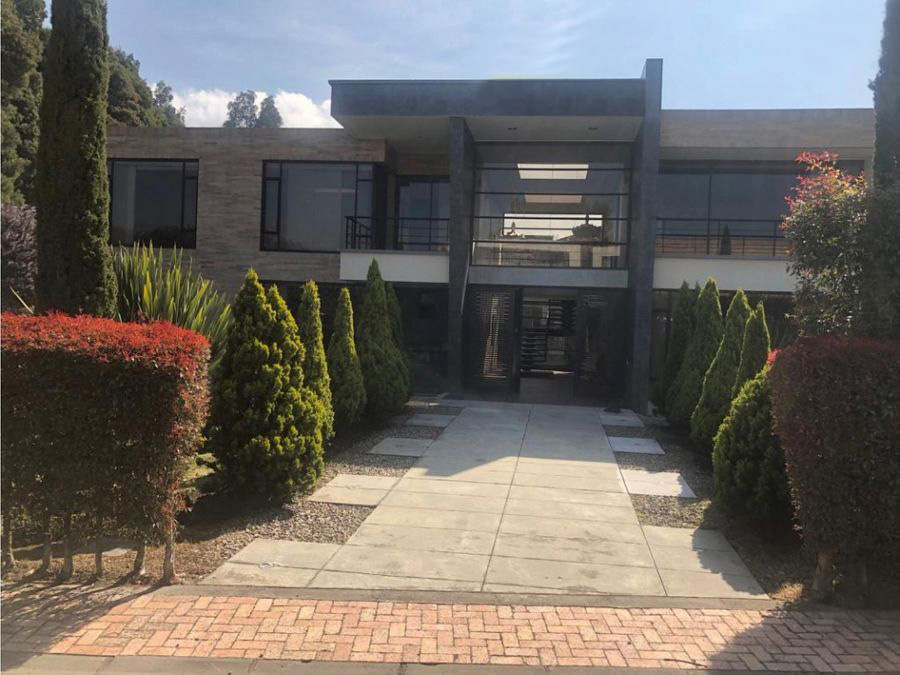 Conjunto en la Sabana de Bogotá con jardines, seguridad parques y zonas verdes, cerca de transporte público cercano a 5 minutos de la Autopista Norte. Dentro de lote de 1400 m2 y área construida de 474 m2. Cuenta con 2 habitaciones con baño privado y vestier cada una, en primer piso, sala de televisión, gran espacio de sala con chimenea y comedor integrados con cocina abierta moderna con torre de hornos. Lavador de platos, y nevecón e independiente zona de lavandería, habitación y baño de servicio, depósitos en el piso 2.