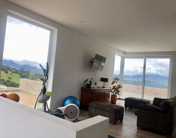 Por el placer de vivir con aire puro y la mejor vista a Sopó en Cundinamarca. La(o) invito a visitar esta excelente casa, dentro de Club House con senderos, piscina, canchas de juego, salón social, restaurante, y pesebreras. Goza de un área de terreno de 1840 y 453 m2 construidos: en área privada 313 m2., 3 habitaciones, cada una con baño privado, y vestier. Hall de habitaciones, sala y comedor con chimenea a gas, estudio, cocina abierta a la zona social y al BBQ. 5 parqueaderos y un amplio baseman que se puede convertir en varias opciones: Gimnasio, sala de juegos, bar o teatrino.