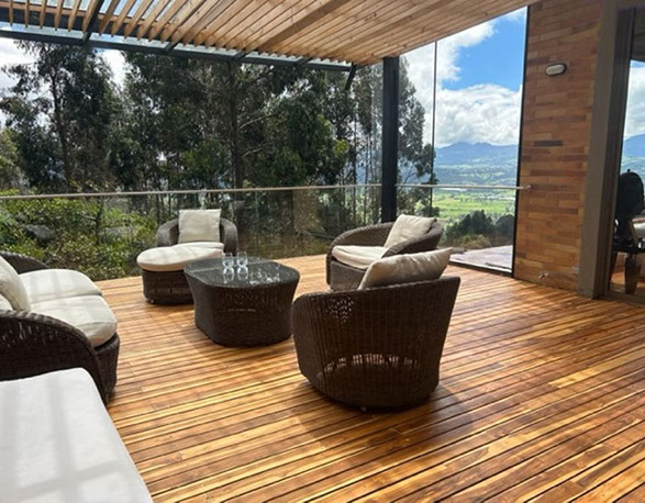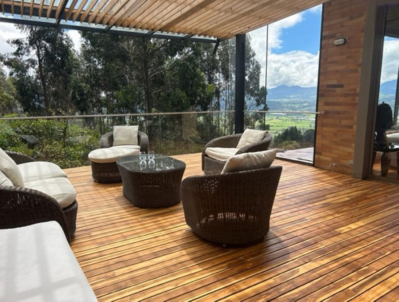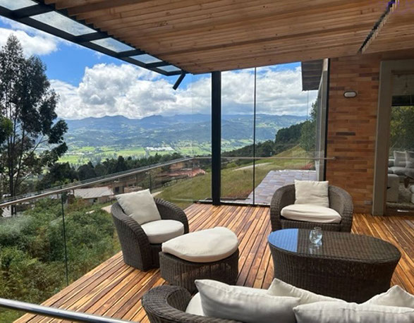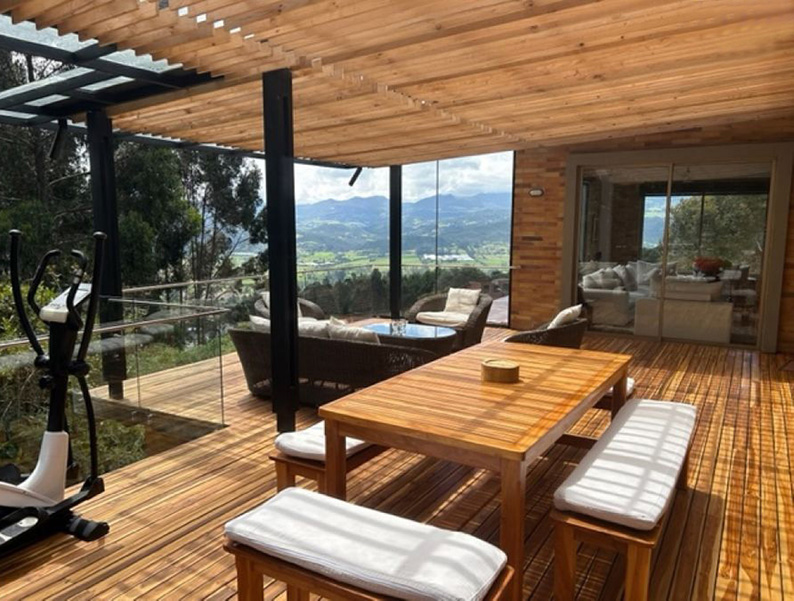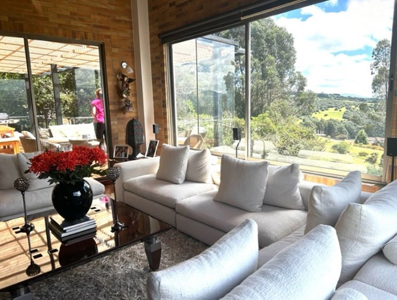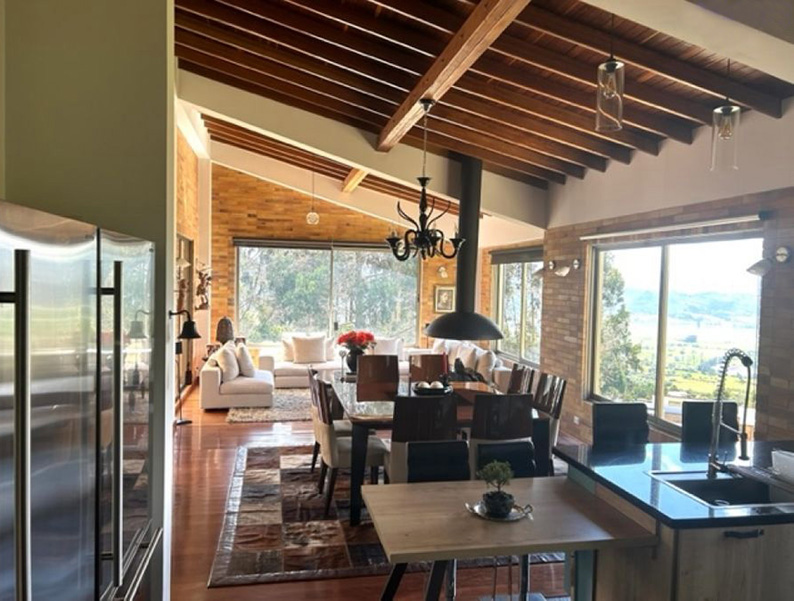 Vista a Sopó. Diseño exclusivo, dentro de área de lote de 2.200 y 300 m2 de área construida, distribuidos en un primer nivel con 80 m2 en el DECK, sala y comedor independientes, estudio o sala de televisión con chimenea. Cocina abierta con zona de servicios y puerta de acceso. 3 habitaciones, la principal con vestier, baño privado con jacuzzi y salida a la terraza, habitación adicional con baño y vestier. En piso hacia abajo encontramos una sala de juegos con chimenea y baño completo, depósito grande y 5 parqueaderos.