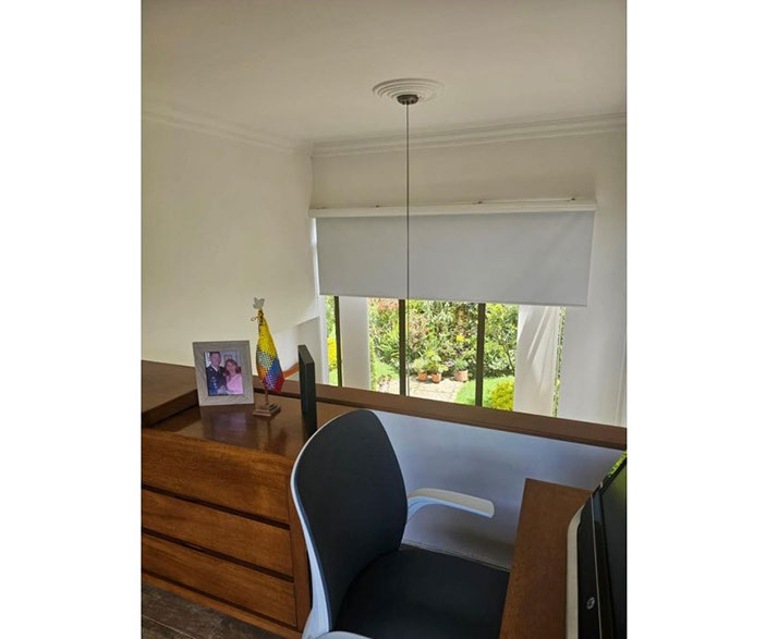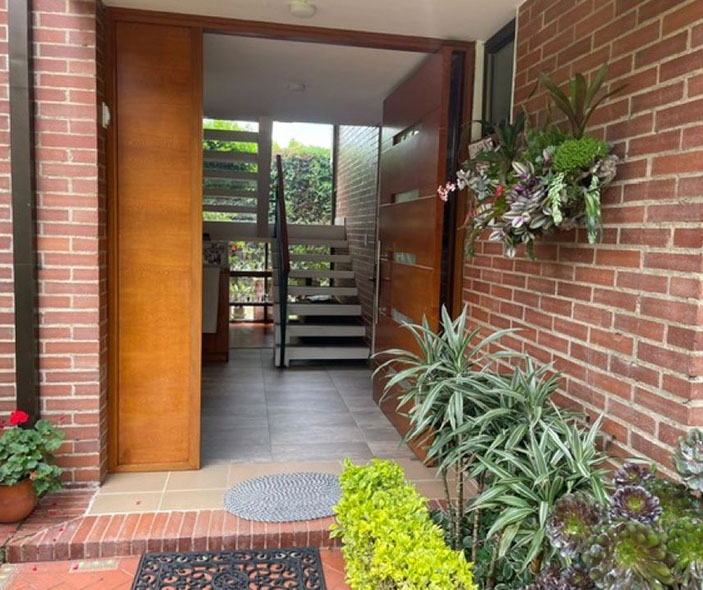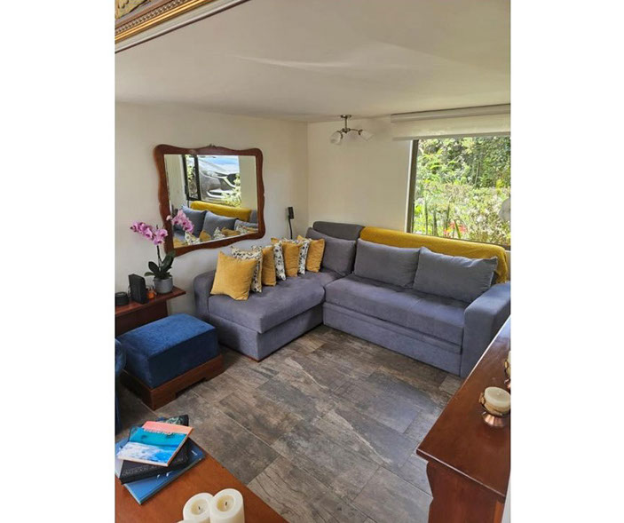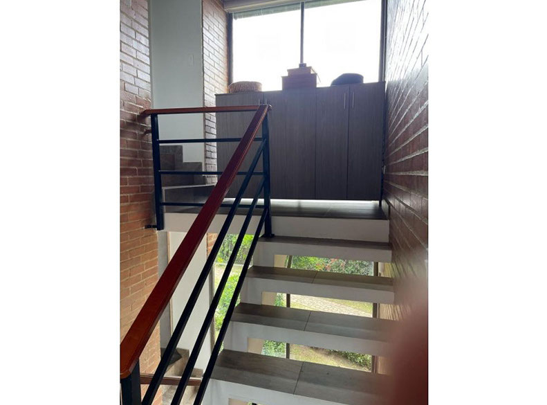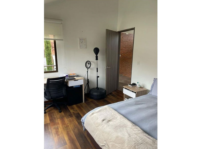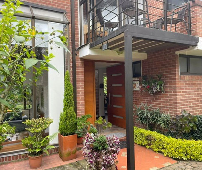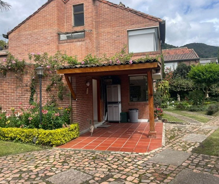 Vendo casa Chía vía Cota muy cerca de Andrés Carne de Res en conjunto cerrado, rodeado de árboles y naturaleza, con tanque de reserva de agua por hidroflow, y de aguas lluvias. Tiene un sendero para caminar y huerta comunal. La casa está completamente remodelada, iluminada, cálida con ventanería piso techo en sala, con área construida de 184 m2 (151 CDL) y tres niveles. El primer nivel consta de; sala con chimenea, comedor independiente, baño social, cocina abierta con barra, comedor auxiliar y zona de lavandería. En el segundo nivel; estudio con sala de TV y balcón, 2 habitaciones una de ellas con altillo, que comparten un baño. En el tercer nivel; habitación principal con baño privado y 2 parqueaderos. Administración por conserjería.