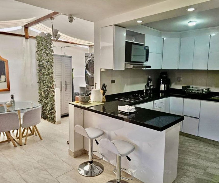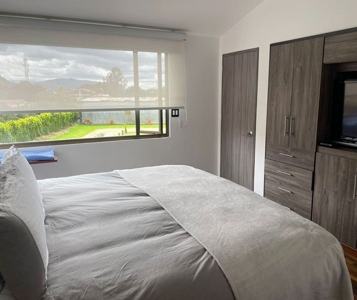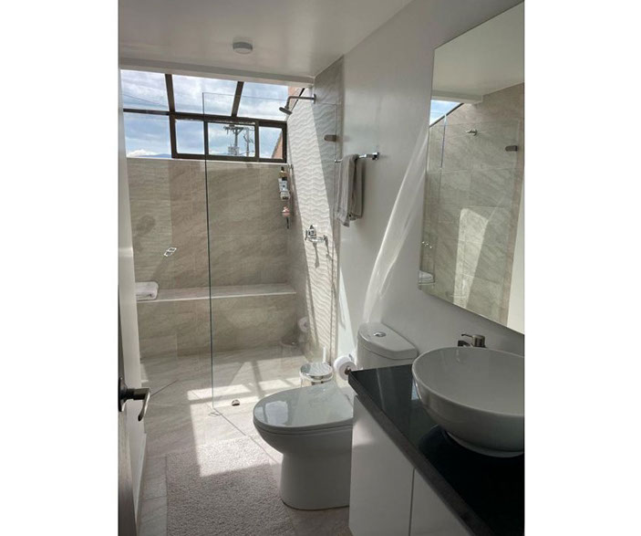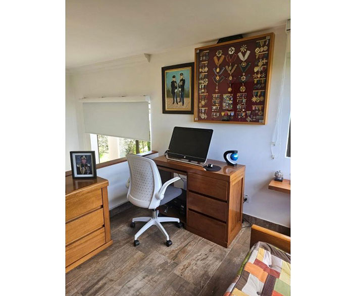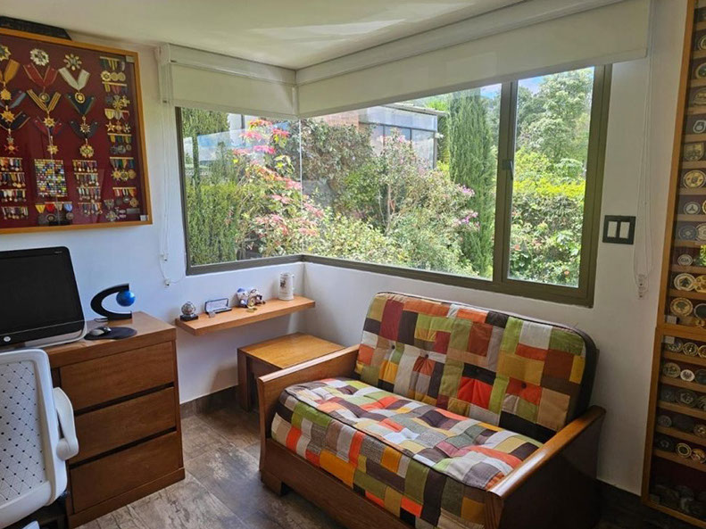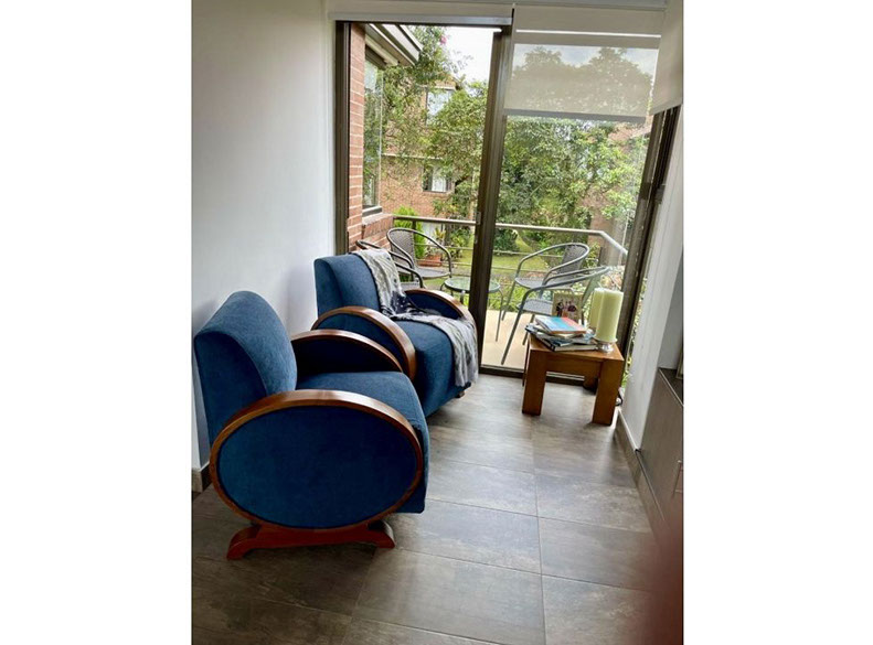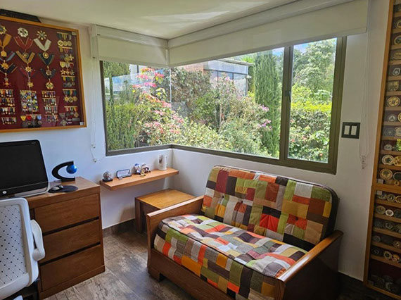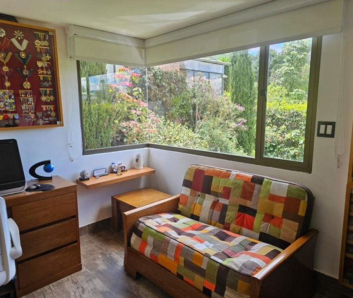 Vendo casa Chía vía Cota muy cerca de Andrés Carne de Res en conjunto cerrado, rodeado de árboles y naturaleza, con tanque de reserva de agua por hidroflow, y de aguas lluvias. Tiene un sendero para caminar y huerta comunal. La casa está completamente remodelada, iluminada, cálida con ventanería piso techo en sala, con área construida de 184 m2 (151 CDL) y tres niveles. El primer nivel consta de; sala con chimenea, comedor independiente, baño social, cocina abierta con barra, comedor auxiliar y zona de lavandería. En el segundo nivel; estudio con sala de TV y balcón, 2 habitaciones una de ellas con altillo, que comparten un baño. En el tercer nivel; habitación principal con baño privado y 2 parqueaderos. Administración por conserjería.
