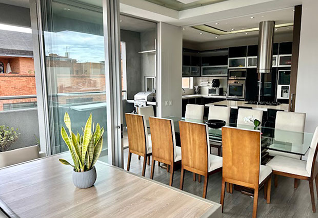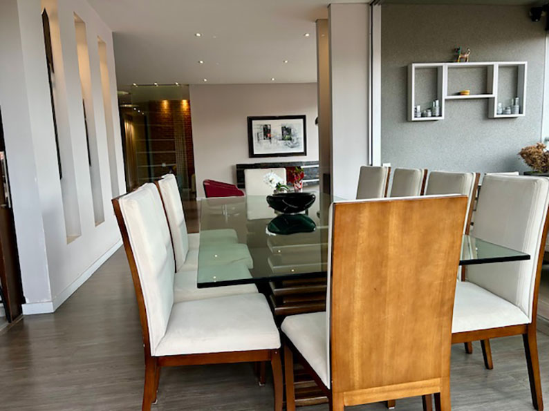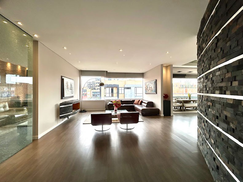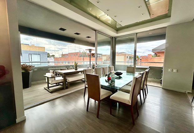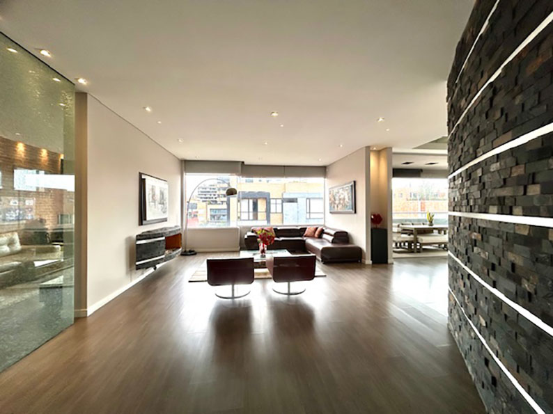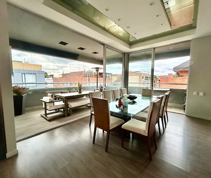 Venta Penthouse Santa Paula, en el corazón del norte de Bogotá, con las mejores vías de acceso, carrera 9, carrera 15, calles 127, 116, 109, en donde puedes encontrar todo lo que necesitas. Centros comerciales, clínicas, colegios, restaurantes, y corredores viales que harán de tu vida un lugar de crecimiento, comodidad y confort. El apartamento enmarcado en 245 m2 con terminados modernos y actuales que le dan rentabilidad a tu inversión. Los amplios espacios sociales, con terraza semiperimetral, cocina abierta, barra, zona de servicios, sala de televisión, estudio, salón de juegos, 3 habitaciones, cada una con baño privado y la principal con vestier y balcón.