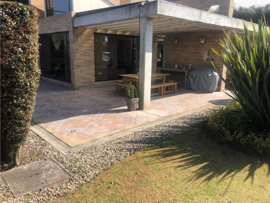 Conjunto en la Sabana de Bogotá con jardines, seguridad parques y zonas verdes, cerca de transporte público cercano a 5 minutos de la Autopista Norte. Dentro de lote de 1400 m2 y área construida de 474 m2. Cuenta con 2 habitaciones con baño privado y vestier cada una, en primer piso, sala de televisión, gran espacio de sala con chimenea y comedor integrados con cocina abierta moderna con torre de hornos. Lavador de platos, y nevecón e independiente zona de lavandería, habitación y baño de servicio, depósitos en el piso 2.