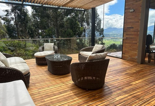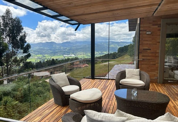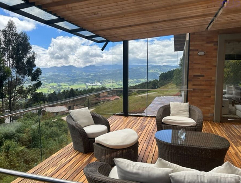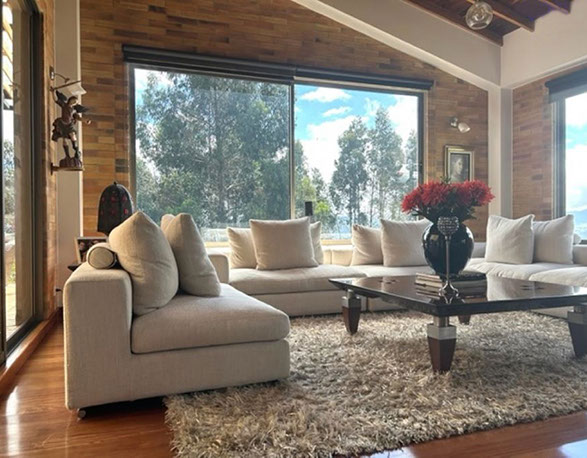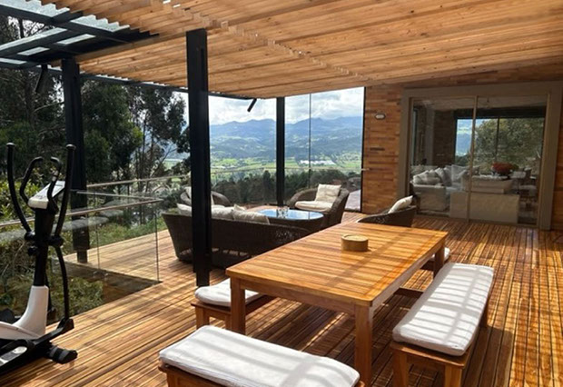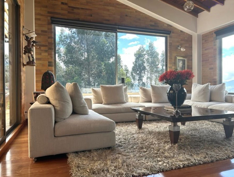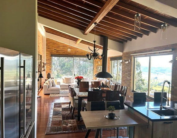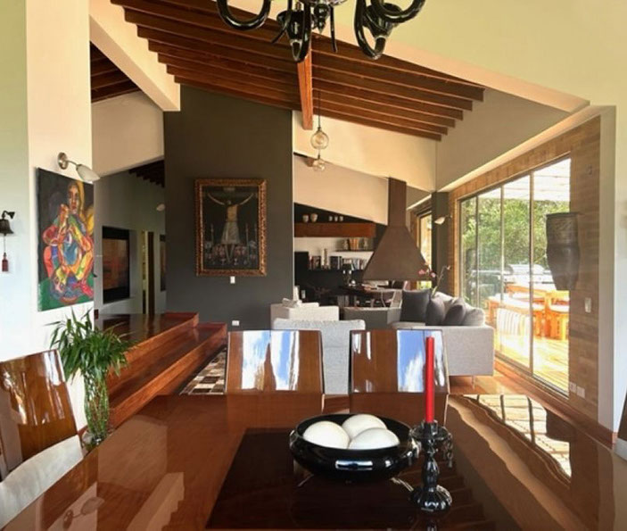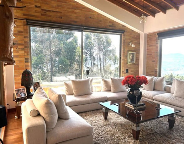 Vista a Sopó. Diseño exclusivo, dentro de área de lote de 2.200 y 300 m2 de área construida, distribuidos en un primer nivel con 80 m2 en el DECK, sala y comedor independientes, estudio o sala de televisión con chimenea. Cocina abierta con zona de servicios y puerta de acceso. 3 habitaciones, la principal con vestier, baño privado con jacuzzi y salida a la terraza, habitación adicional con baño y vestier. En piso hacia abajo encontramos una sala de juegos con chimenea y baño completo, depósito grande y 5 parqueaderos.