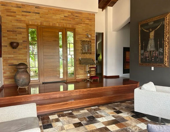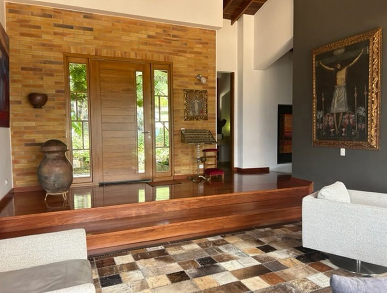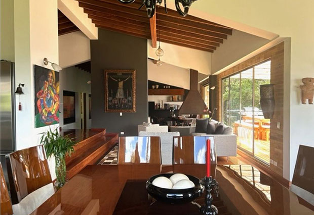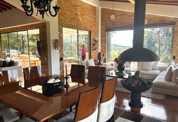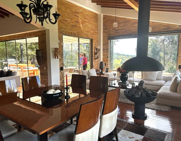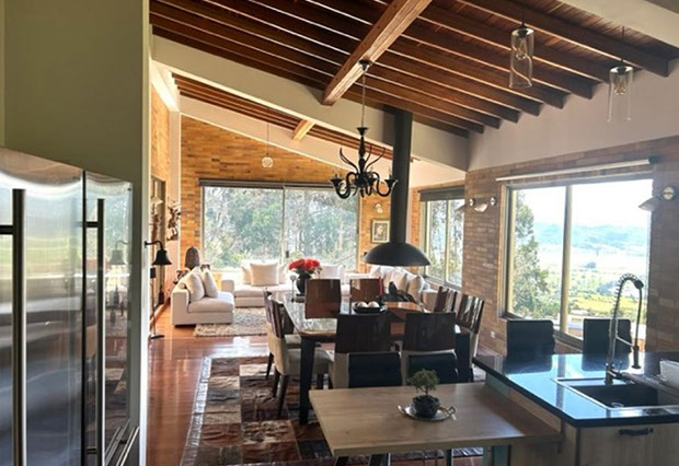 Vista a Sopó. Diseño exclusivo, dentro de área de lote de 2.200 m2 y 300 de área construida, distribuidos en un primer nivel con 80 m2 en el DECK, sala y comedor independientes, estudio o sala de televisión con chimenea. Cocina abierta con zona de servicios y puerta de acceso. 3 habitaciones, la principal con vestier, baño privado con jacuzzi y salida a la terraza, habitación adicional con baño y vestier. En piso hacia abajo encontramos una sala de juegos con chimenea y baño completo, depósito grande y 5 parqueaderos.